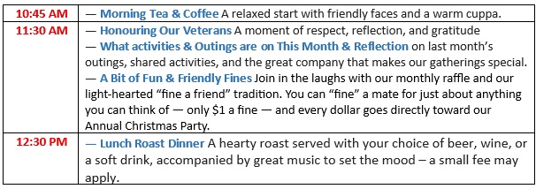 1st Saturday of the Month, Club Iluka, except January - Next Gathering 7th February 2026