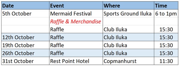 For all events contact Bruce McIntosh on bruce@ilukaveterans.com.au to confirm date